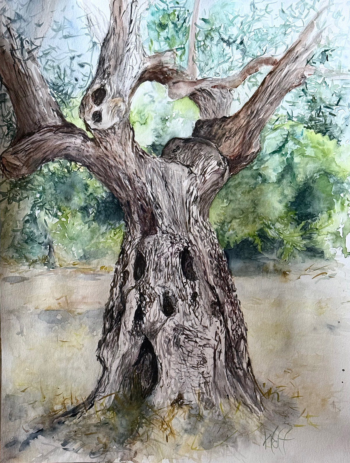 WOLF Kristina Viera - Olivier 3, Derveni , tableau, aquarelle sur papier, signature
